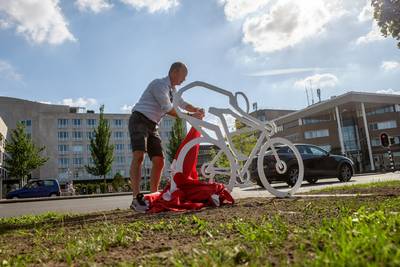 maandag 21 augustus 2023, 21:25 uurEen nieuw kunstwerk aan de Claudius Prinsenlaan gaat voorbijgangers in Breda voortaan herinneren aan de Spaanse wielerwedstrijd La Vuelta. Die startte en finishte daar precies een jaar geleden. Het monument, een silhouet van de Ier Sam Bennet die als eerste over de eindstreep komt, werd maandag door een trotse wethouder Daan Quaars onthuld.
