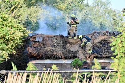 Grote brand in garage met rieten kap in Breda, dure auto naar buiten gereden