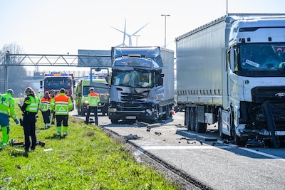 BREDA - Drie vrachtwagens zijn woensdagmiddag op elkaar gebotst op de A16 bij knooppunt Galder. Alle voertuigen raakten hierbij flink beschadigd. De rechterrijstrook richting Breda werd tijdelijk gesloten. Rond 16.30 uur waren de problemen verholpen.