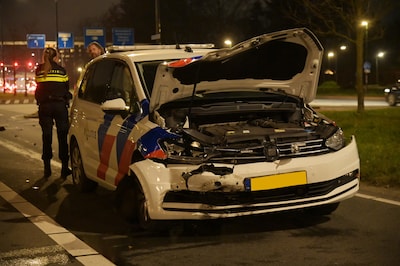 Politiewagen en auto flink beschadigd na botsing in Breda