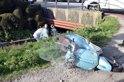 Vrouw botst tegen auto, valt van haar scooter en belandt in een diepe sloot in Bruchem
