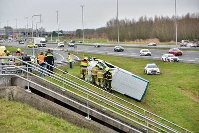 Bestelbus mist afslag op A2 bij Culemborg en slaat over de kop