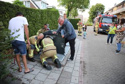 Jongetje valt in ondergrondse container, maar daar is de brandweer