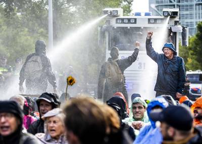 Waterkanon mag blijven spuiten op demonstranten Extinction Rebellion