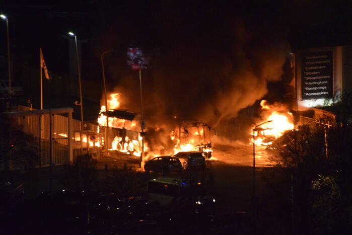 Aan het begin van de avond liep dit uit op ernstige rellen bij het zalencentrum Opera. Een van de partijen had een bijeenkomst belegd in het zalencentrum, waar de tegenstanders op afkwamen. Bij deze rellen is er met stenen, vuurwerk en andere spullen naar agenten en de brandweer gegooid. Verschillende relschoppers hadden slagvoorwerpen bij zich. Inzet traangas De burgemeester van Den Haag heeft daarop een noodbevel afgegeven en toestemming gegeven voor de inzet van de Mobiele Eenheid en traangas. Bij de ongeregeldheden zijn ook twee politieauto’s en een touringcar in vlammen op gegaan. Bij het blussen van de politieauto’s moest de brandweer zich terugtrekken. Nadat er beschermingshekken voor de ramen van de brandweerauto’s werden gezet kon de brandweer verder met het blussen. Ook zijn er andere auto’s vernield door rondvliegende stenen. Het zalencentrum Opera is ook zwaar beschadigd geraakt. Door de rook en warmte raakten meerdere bezoekers van de Opera onwel. Agenten gewond Voor zo ver nu bekend raakten acht agenten gewond. Twee agenten raakten gewond aan de hand, twee aan de rug en een andere agent liep letsel op aan haar gebit. Een agent raakte gewond nadat hij werd aangereden door een politieauto. Daarnaast raakte een agent onwel als gevolg van het traangas dat is ingezet en een andere agent liep verwondingen aan de knie op. ’Vanuit het niets werden onze collega’s geconfronteerd met zeer heftig en ernstig geweld’, zegt algemeen commandant Mariëlle van Vulpen. ‘Het is zeer te betreuren dat collega’s gewond zijn geraakt en ook andere hulpverleners ernstig belaagd werden dit is onacceptabel. Samen met het Openbaar Ministerie doen we uitgebreid onderzoek naar deze ongeregeldheden’. Aanhoudingen Tot op heden zijn dertien verdachten aangehouden. Het gaat om mannen in de leeftijd van 19 tot en met 36 jaar oud. Team Grootschalige Opsporing (TGO) Naar aanleiding van deze ernstige rellen is een Team Grootschalige Opsporing (TGO), onder leiding van een officier van justitie opgestart. Op dit moment heeft de politie meerdere aanhoudingen verricht. Het onderzoek is nog in volle gang. De politie komt graag in contact met getuigen van deze rellen. Beschikt u over camera’s, videodeurbellen of dashcam’s? Dan komt het onderzoeksteam graag met u in contact. Heeft u andere informatie die het onderzoek kunnen helpen? Deel deze informatie met de opsporingstiplijn 0800-6070 of via Meld Misdaad Anoniem 0800-7000. Via het onderstaand tipformulier kunt u eventueel het beeldmateriaal uploaden.