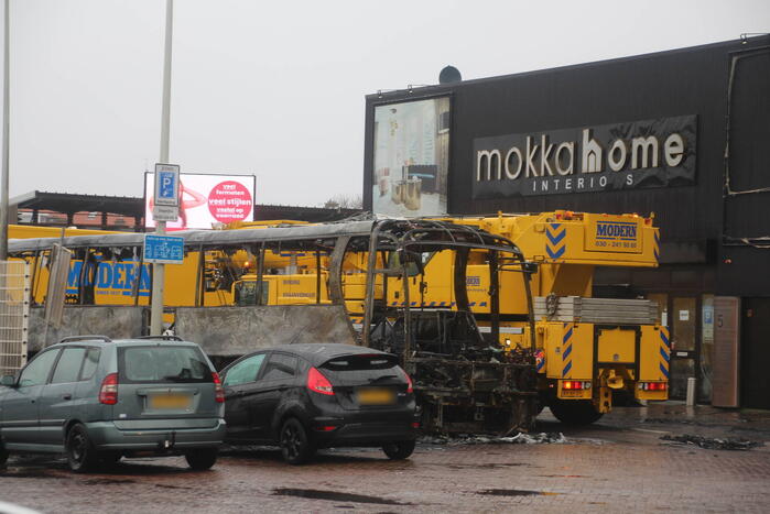De ravage die zaterdagavond ontstond nabij zalencentrum Opera aan de Haagse Fruitweg is grotendeels opgeruimd. Alleen de uitgebrande touringcar van vervoersmaatschappij HTM staat nog op straat, ziet een ANP-verslaggever.