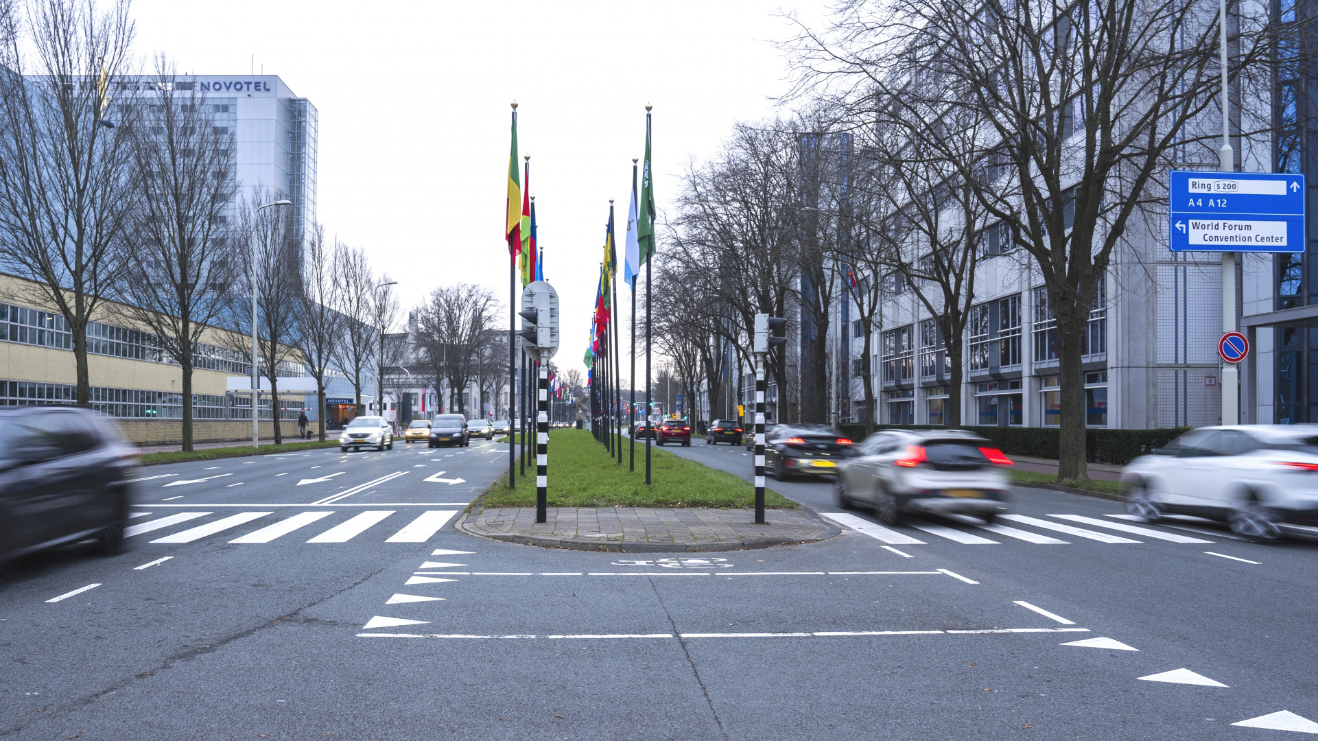 De Johan de Wittlaan bij het World Forum in Den Haag gaat maandag al gedeeltelijk dicht. In beide rijrichtingen wordt één van de twee rijstroken afgesloten. Dat komt omdat er al werkzaamheden worden verricht voor de NAVO-top van juni. Vanaf 14 april is de belangrijke doorgaande route vier maanden lang helemaal dicht.