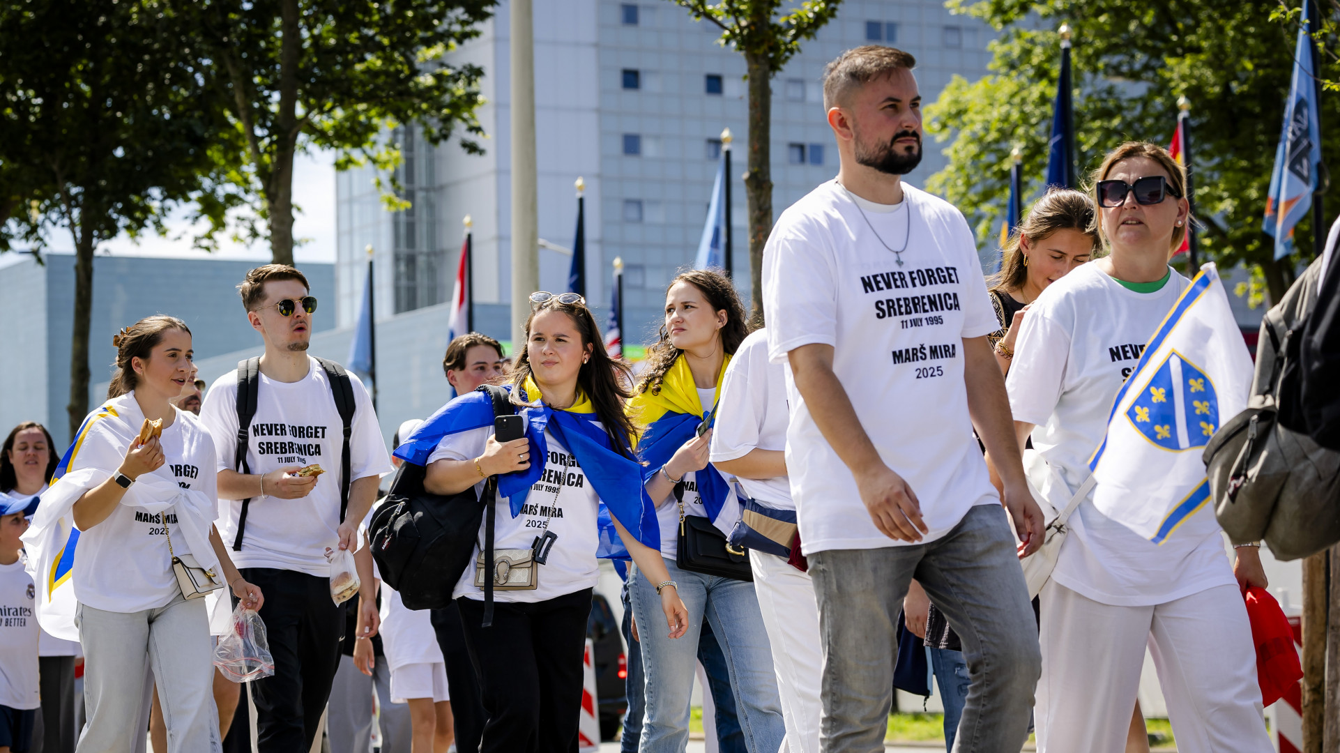 vrijdag 11 juli 2025, 19:36 uurOp de Lange Voorhout in Den Haag hebben honderden mensen de genocide in Srebrenica uit 1995 herdacht. Voorafgaande aan de herdenking werd vanuit Wassenaar een mars van 11 kilometer gelopen, een verwijzing naar 11 juli. Ook werd bij het voormalige Joegoslaviëtribunaal een zogenoemde plaatsmarkering onthuld, in afwachting van een permanent monument.