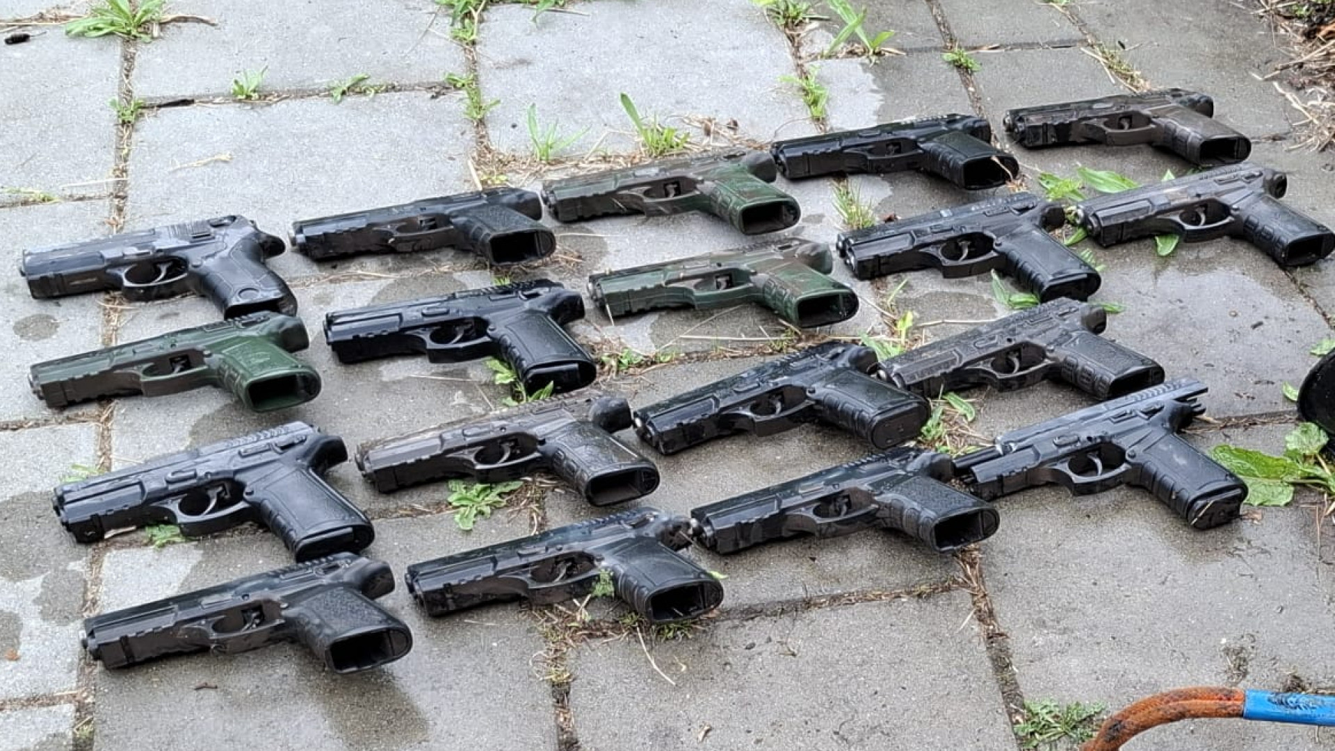 maandag 21 juli 2025, 11:00 uurDe achttien vuurwapens die een magneetvisser uit een sloot in Den Haag heeft gevist, zijn allemaal te gebruiken. 'Het gaat om een aantal echte vuurwapens en een aantal dat omgebouwd is, waardoor het wel te gebruiken is als vuurwapen', laat een politiewoordvoerder weten.