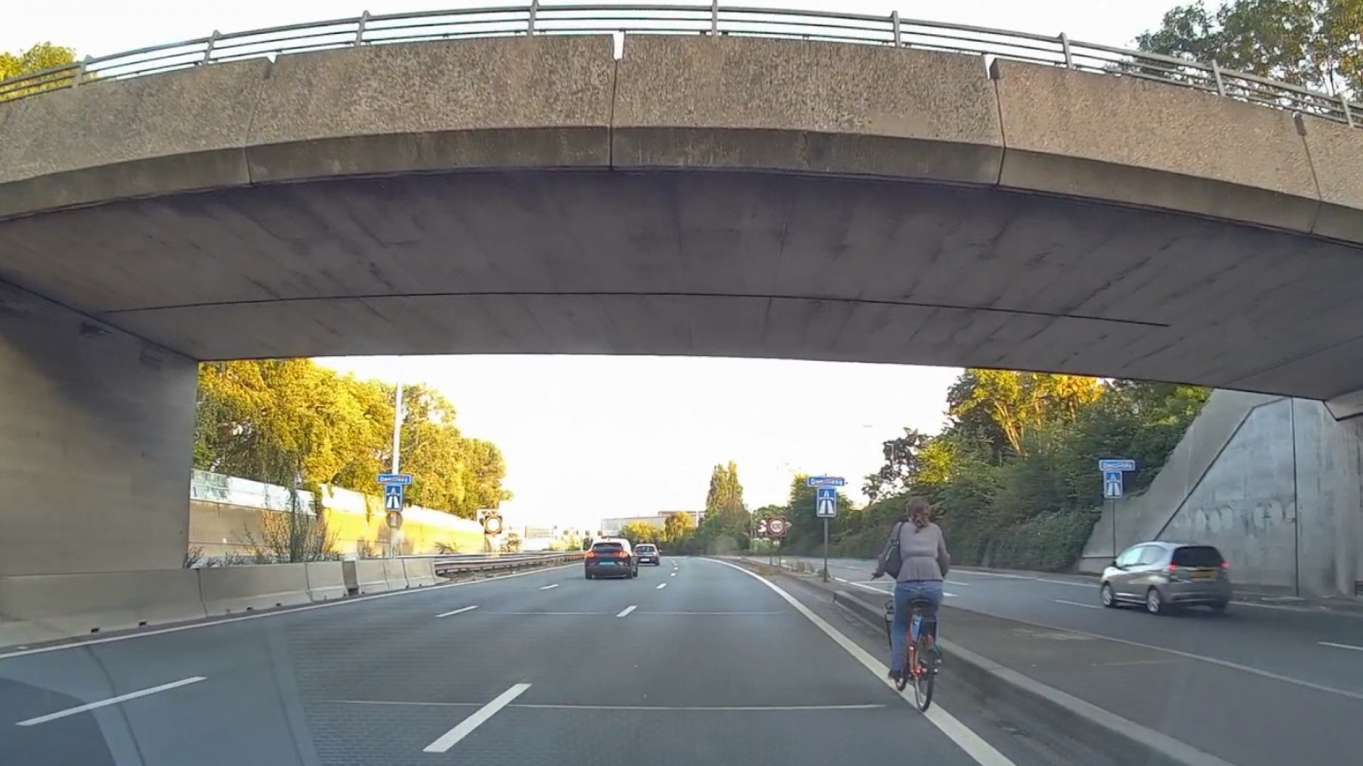 KIJK | Oeps, verkeerde afslag! Vrouw fietst de snelweg op