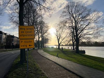 Vanwege hoogwater heeft Deventer de Welle langs de IJssel afgesloten voor het verkeer. Het noodplan treedt in werking en zandzakken worden langs de kademuur geplaatst. Morgenochtend stroomt de Welle onder, is de verwachting.