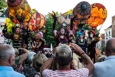 Het grote internationale theaterfestival Deventer op Stelten staat dit weekend op het programma in de Hanzestad. Gisteravond werd het festival geopend voor bejaarden en gehandicapten. Fotografen Silfan van der Kaap en Antoinette van Bussel waren erbij.