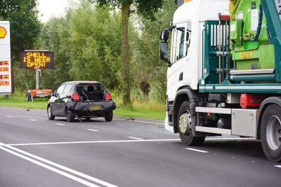 Vrachtwagen botst op auto in Deventer: één gewonde, weg bezaaid met glas