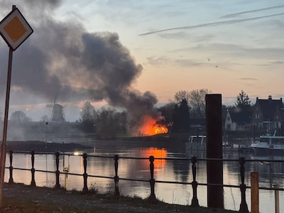 dinsdag 18 november 2025, 07:39 uurDonkere rookwolken aan de IJssel in Deventer dinsdagochtend. Een schuur staat in brand en dat is goed te zien vanaf de Welle.