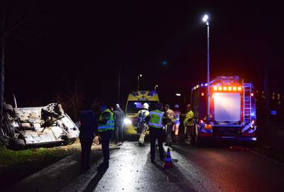 Auto over de kop in Doetinchem, twee mensen gewond naar het ziekenhuis