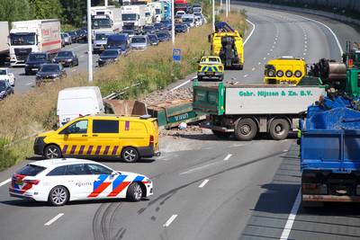 A16 bij Dordrecht weer open na ongeluk met vrachtauto vol stenen