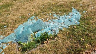 Bijna alle 67 glaspanelen van gedenkplaats KWF bij Dronten met hamer vernield