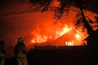 maandag 7 augustus 2023, 07:04 uurBij een grote brand in het buitengebied van Dronten zijn afgelopen nacht twee loodsen verwoest. De woning op hetzelfde erf bleef bleef gespaard. Drie mensen hebben rook ingeademd en zijn nagekeken in een ambulance.