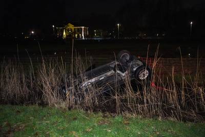 Auto vliegt over de kop, inzittende vlucht