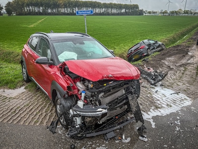 Auto belandt in greppel na botsing, twee personen gecontroleerd door ambulance