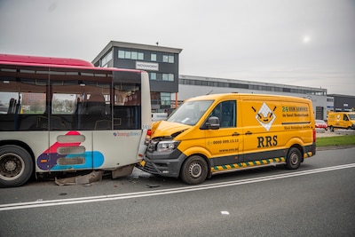 Een bestelbus is dinsdagmiddag flink beschadigd geraakt na een botsing met een lijnbus in Duiven. Niemand is gewond geraakt.
