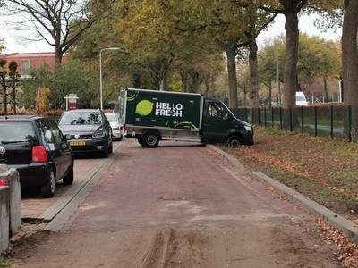 Bestuurder rijdt Hello Fresh-bakwagen klem en blokkeert weg