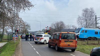 Twee auto's botsen tegen elkaar bij spoorwegovergang