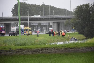 Auto raakt van snelweg en belandt in het water, slachtoffer met spoed naar ziekenhuis