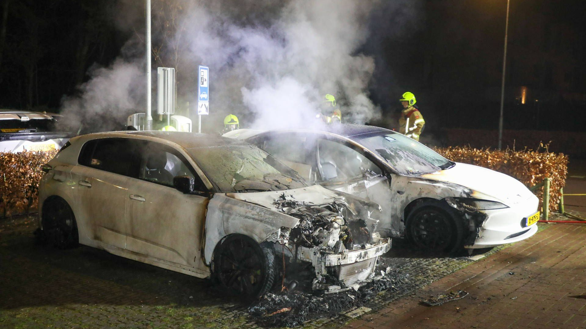 Twee elektrische auto's zijn in de nacht van woensdag op donderdag door brand verwoest aan de Cornelis Garritsenstraat in Ede.