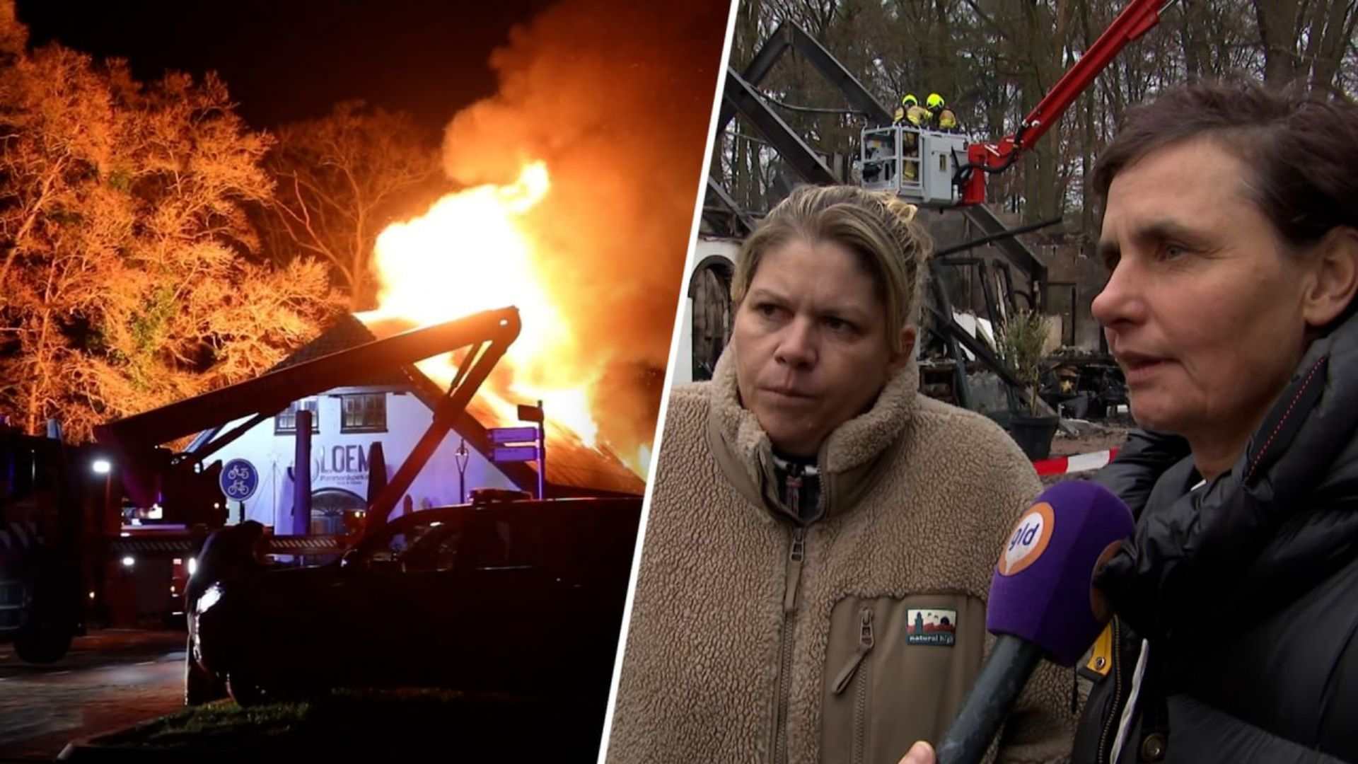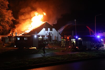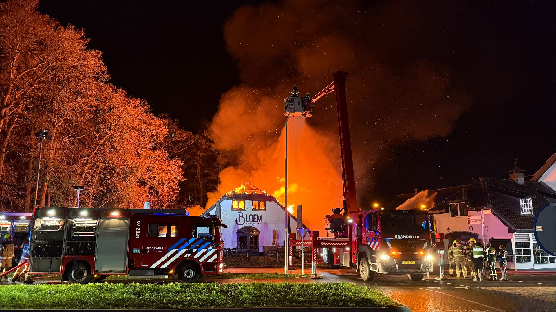Vlammen slaan metershoog uit het dak: pannenkoekenrestaurant verwoest door zeer grote brand