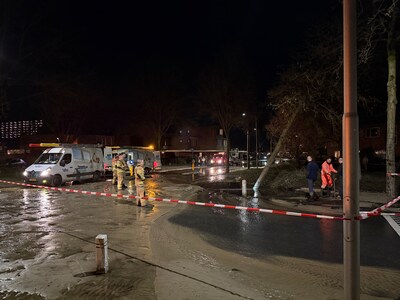 Door een gesprongen waterleiding zijn dinsdagavond de Hofbeeklaan en de Nienhof in Ede onder water komen te staan. Medewerkers van de gemeente hebben de omgeving ruim afgezet.