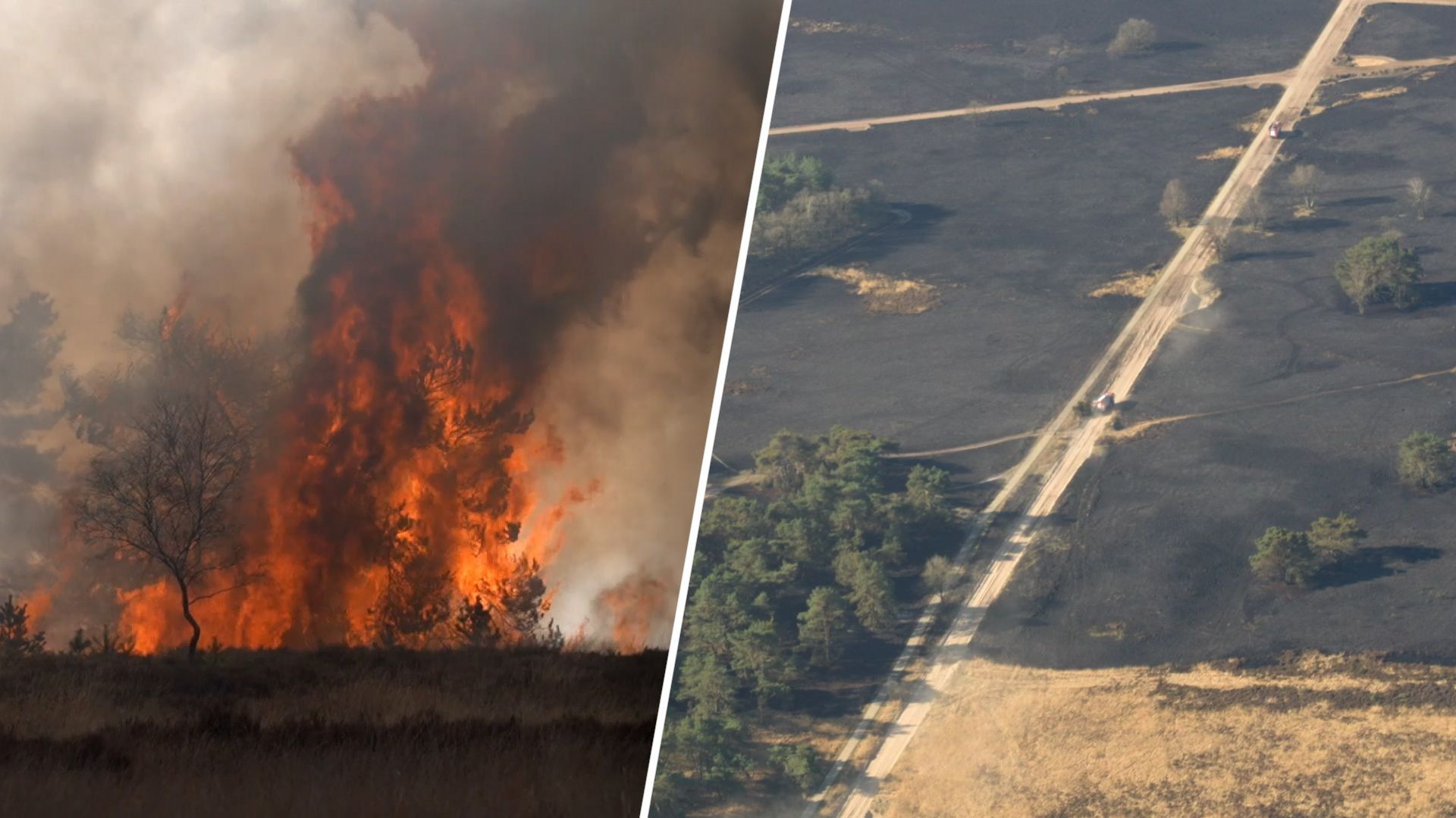 De enorme natuurbrand die donderdag in Ede uitbrak heeft enorme schade aangericht. Er is 130 hectare van de Edese Heide in vlammen op gegaan. In deze beelden is te zien hoe de heide er nu uit ziet.