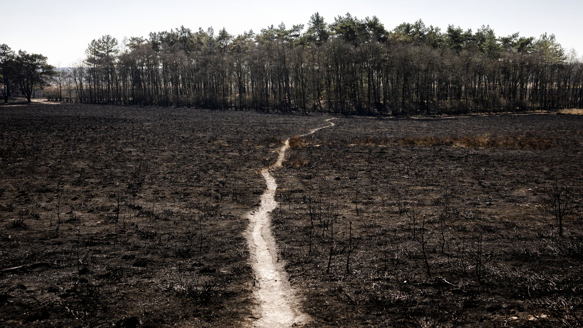 Afgebrande heide vanuit de lucht • staatssecretaris betreurt hoeveel natuur is afgebrand