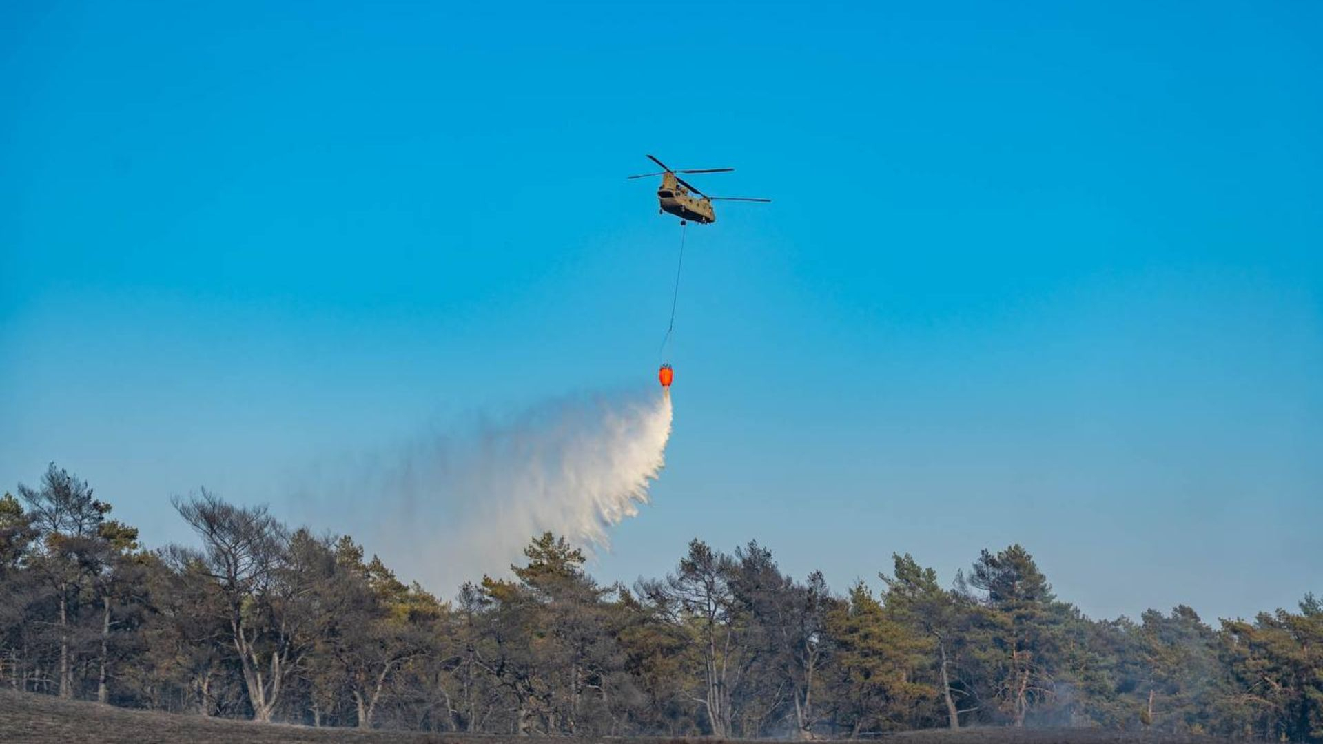 Het ministerie van Defensie zet een Chinook-transporthelikopter in om de brandweer te helpen bij de bluswerkzaamheden in Ede. Daar woedt sinds donderdagmiddag een grote brand op de heide.