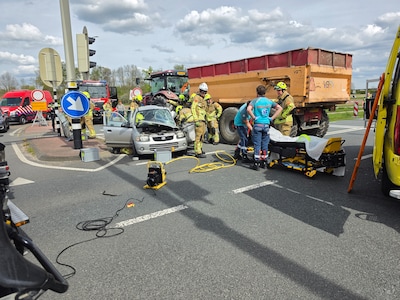 Automobilist bekneld na botsing met tractor op kruising in Ede