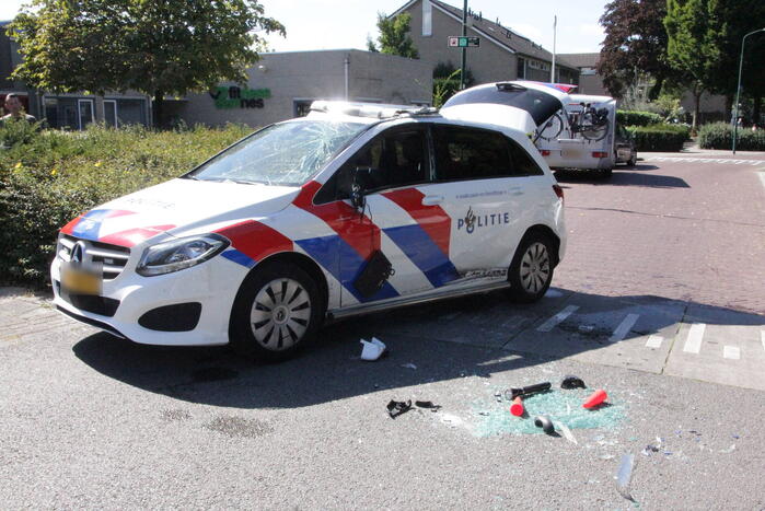 Politieauto botst tijdens spoedrit tegen andere auto en slaat over de kop