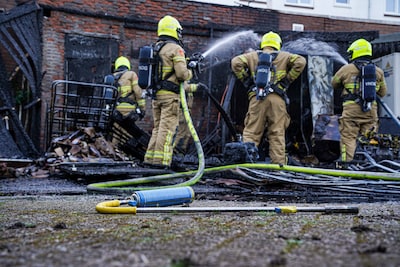 Opslaghok afgebrand door onkruidbrander, winkelgevel beschadigd