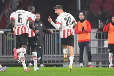 zaterdag 21 januari 2023, 22:00 uurPSV heeft de eerste competitiezege van 2023 geboekt. Het Vitesse van coach Phillip Cocu, waar Kjell Scherpen met een slippertje én een rode kaart de schlemiel van de avond werd, werd in Eindhoven met 1-0 geklopt. Tegenvaller voor PSV was het uitvallen van Luuk de Jong, die na een gemiste penalty uitviel met een hoofdblessure