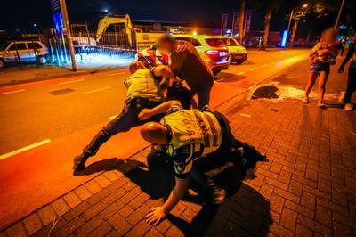 Hevig verzet tijdens aanhouding De politie had de plaats van het ongeval afgezet om verder onderzoek te doen naar de toedracht van het ongeval. De bestuurder van een bestelbus is door de afzetting van de politie heengereden en kwam op de plaats van het verkeersongeval tot stilstand. De 24-jarige man bleek onder invloed en ging tijdens zijn aanhouding zwaar in verzet. Hierbij werd hij aangemoedigd door enkele omstanders. Tijdens deze worsteling heeft hij geweld gebruikt tegen de politieambtenaar, onder andere is zijn keel dicht geknepen. De bijrijder van de bestelbus heeft zich hierin ook gemoeid en getracht de aanhouding te belemmeren. Hij heeft hierbij geprobeerd een politieambtenaar te slaan. De bestuurder, een bekende van de politie, is vervolgens na een korte achtervolging aangehouden wegens alcoholmisbruik in het verkeer, verzet tijdens aanhouding en openlijke geweldpleging richting een politieambtenaar. De bijrijder wist te ontkomen, wij zijn nog op zoek naar hem. Grens bereikt De politie doet op het moment dat het ertoe doet een stap naar voren om hulp te verlenen en grondig onderzoek te doen naar de toedracht van dit verkeersongeval. Hierbij zijn zij ernstig belemmerd en door de twee verdachten uit de bestelbus is ernstig geweld tegen de politie gepleegd. Wij nemen geweld tegen politieambtenaren zeer serieus en tolereren dit gedrag niet. Oproep aan bijrijder bestelbus Camerajournalisten die aanwezig waren bij de afhandeling van het verkeersongeval hebben het voorval gefilmd en online gezet. Het onderzoek van de politie naar het ongeval en het incident met de bestelbus gaat voort. Uiteraard zullen we daar bij gebruik maken van de beelden die van het incident online staan. Wij roepen de bijrijder van de bestelbus op zichzelf te melden bij de politie.