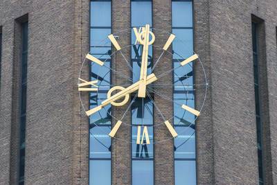 maandag 21 februari 2022, 12:41 uurWie graag op tijd komt, moet in Emmeloord voorlopig maar even niet naar de klok aan de noordzijde van de Poldertoren kijken. Door de harde stormwind van Dudley, Eunice en Franklin lopen de wijzers ruim een halfuur achter. Bovendien is het cijfer III weggewaaid.