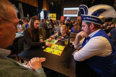 Het duurt nog een half uur voordat er gespeeld kan worden, maar mevrouw Nel Brouwer-Wind (63) uit Emmeloord is er klaar voor en zit al bij haar tafeltje te wachten op haar drie medespelers. ,,Al jarenlang’’, doet ze mee. Later weet ze te berekenen dat dit toch al wel haar twintigste keer is.