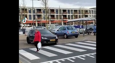 Wegpiraat rijdt bijna vrouw aan op zebrapad in Emmeloord: video ruim 500.000 keer bekeken