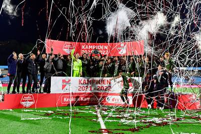 vrijdag 29 april 2022, 22:05 uurFC Emmen heeft ondanks een nederlaag bij FC Eindhoven (1-0) de titel in de Keuken Kampioen Divisie veroverd. De koploper uit Drenthe, die al zeker was van promotie naar de Eredivisie, heeft met nog een wedstrijd te spelen 6 punten meer dan FC Volendam, dat met 3-2 verloor bij FC Dordrecht.
