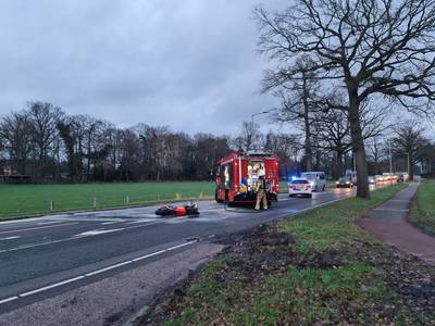 Motorrijder tientallen meters over asfalt geslingerd na aanrijding, motor vat vlam