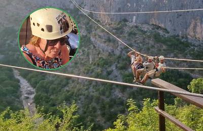 'Klungelige' Yvonne komt stil te hangen aan zipline boven 200 meter hoog ravijn in Kroatië