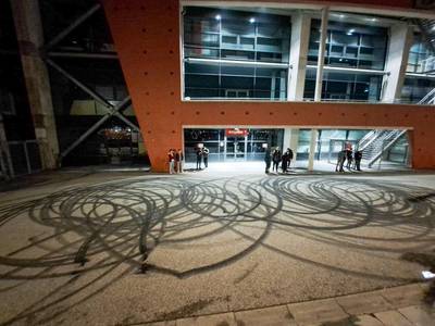 Bij De Grolsch Veste in Enschede kwamen zaterdag honderden mensen bijeen om al driftend over het parkeerterrein te scheuren tijdens een Duitse carmeeting.
