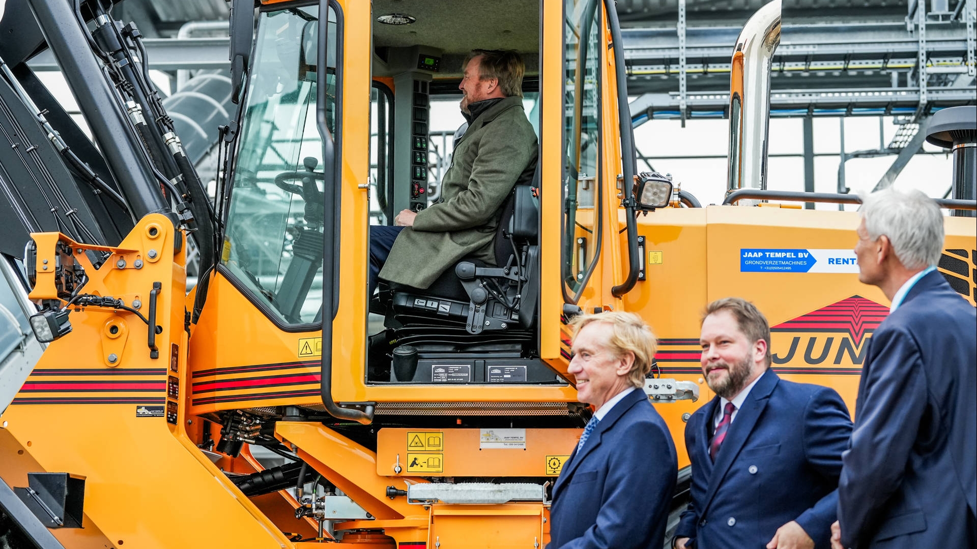 Koning Willem-Alexander opent fabriek in Farmsum vanaf shovel