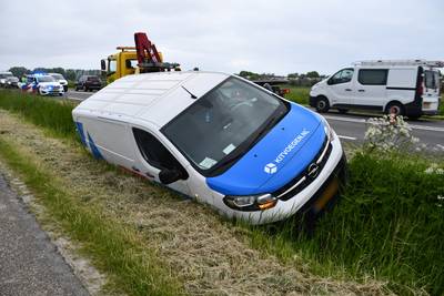 Bestelbus raakt van de weg en belandt in de sloot