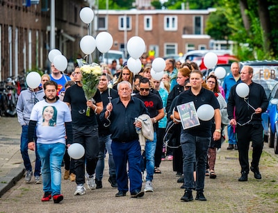 Voor Joeweela (39), die werd doodgeschoten door haar ex-partner, werd zaterdagmiddag een stille tocht gehouden in Gouda. Haar familie liep vooraan. Het enige geluid kwam van gedempte voetstappen en zacht tikkende wandelstokken.