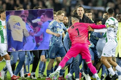 Over het opstootje na FC Groningen - Ajax is het laatste woord nog niet gezegd. Meerdere spelers vlogen elkaar in de haren na het 2-2 gelijkspel. Op beelden is te zien dat Groningen-doelman Etienne Vaessen klappen uitdeelt aan een staflid van Ajax dat op de grond ligt.